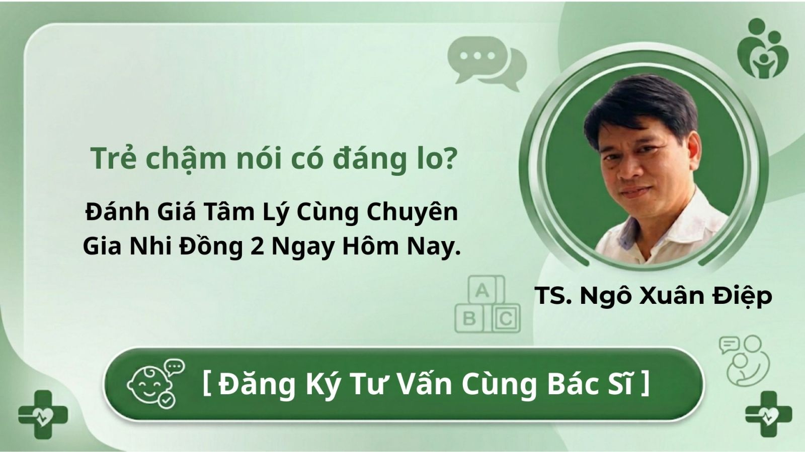 TS. Ngô Xuân Điệp – Tiến sĩ Tâm lý lâm sàng, chuyên gia có hơn 20 năm kinh nghiệm trong lĩnh vực tâm lý và hỗ trợ trẻ có nhu cầu giáo dục đặc biệt, nguyên công tác tại Khoa Tâm lý, Bệnh viện Nhi Đồng 2.